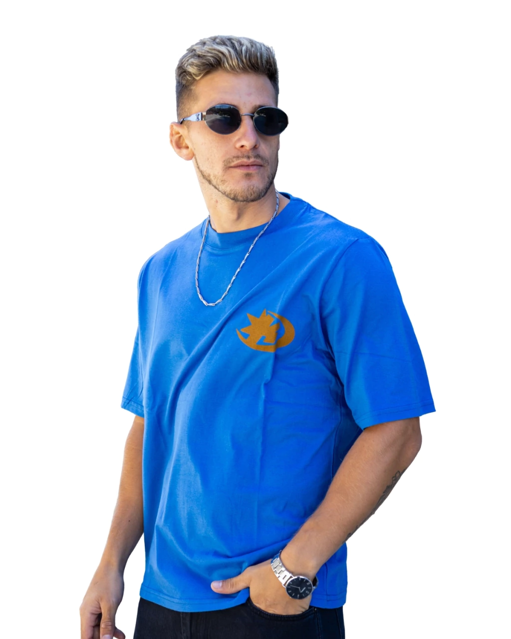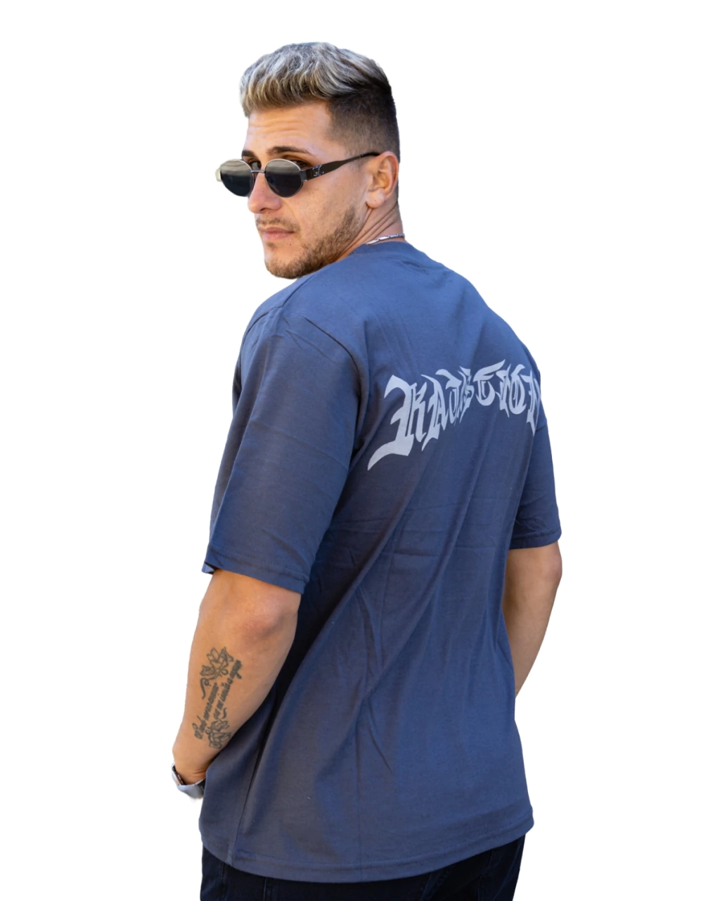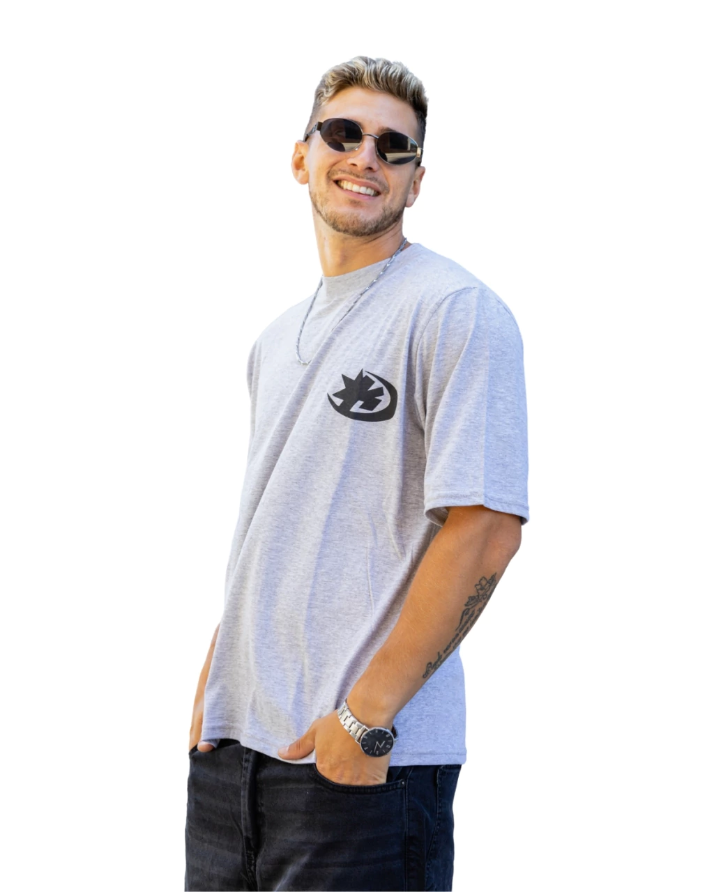 Frente limpio con logo filoso y espalda que rompe con estilo.